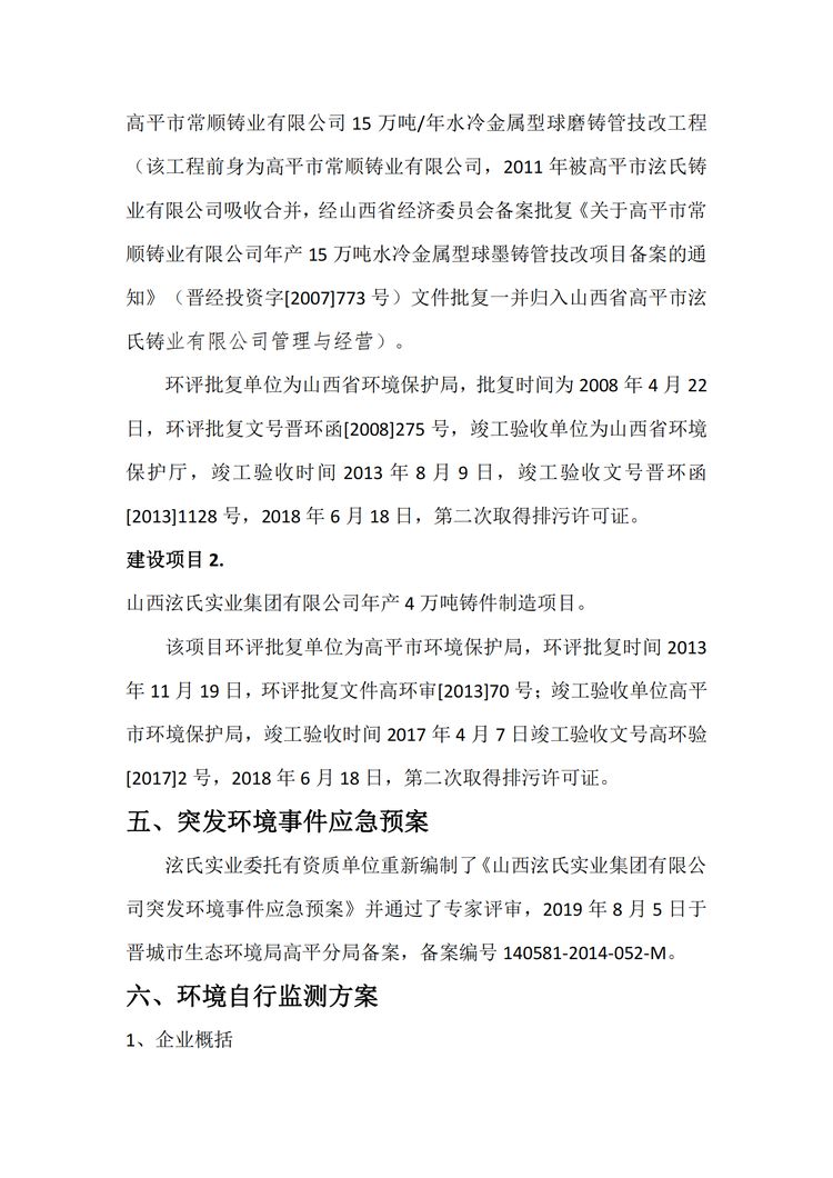 山西泫氏實(shí)業(yè)集團有限公司 環(huán)保信息公示資料